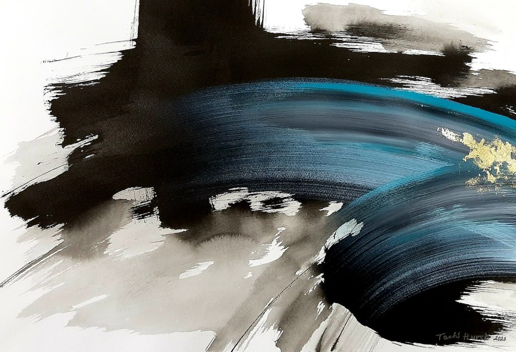 610 x 820 mm, 2020, ink, acrylic paint and goldleaf on paper, in a private collection